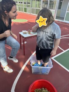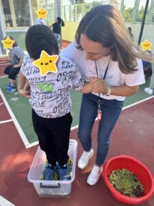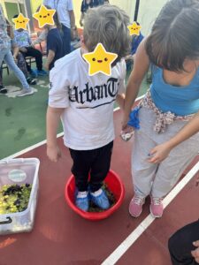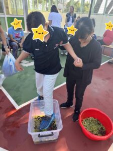 Μίλησαν για την διαδικασία συγκομιδής των σταφυλιών από το αμπέλι μέχρι την επεξεργασία τους για την παραγωγή κρασιού, τραγούδησαν και χόρεψαν τραγούδια για τον τρύγο, πάτησαν σταφύλια στην αυλή και έφτιαξαν μουστοκούλουρα. Έμειναν όλοι ενθουσιασμένοι!  🍇 🍷 🍪