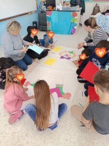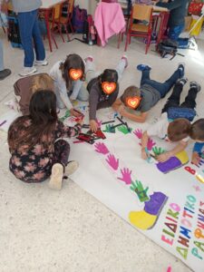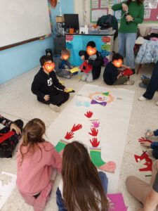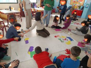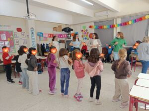 Η συνεκπαίδευση που υλοποιήθηκε την Πέμπτη 19 Φεβρουαρίου μεταξύ δύο τμημάτων του σχολείου μας και της Β΄ τάξης του 6ου Δημοτικού Αρτέμιδος ήταν μια ιδιαίτερα επιτυχημένη δράση συμπερίληψης, συνεργασίας και δημιουργικής έκφρασης. Οι μαθητές και οι μαθήτριες των δύο σχολείων συμμετείχαν από κοινού σε βιωματικές δραστηριότητες, παιχνίδια, κατασκευές και μουσικοκινητικά δρώμενα με αποκριάτικο χαρακτήρα, καλλιεργώντας κλίμα αποδοχής, αλληλοσεβασμού και χαράς. Τα χαμόγελα, οι αγκαλιές και οι όμορφες στιγμές ήταν αποτέλεσμα τόσο της συγκινητικής αλληλεπίδρασης μεταξύ των παιδιών όσο και της επαφής των δικών μας μαθητών με την παλιά τους δασκάλα. Ευχαριστούμε θερμά την διευθύντρια του 6ου ΔΣ Αρτέμιδος κα Κεφοκέρη Κλεονίκη που στηρίζει την συνεργασία των δύο σχολείων και την εκπαιδευτικό κα Μπαμπατσιά Βάια που μας υποδέχθηκε πλέον στην καινούργια της τάξη!