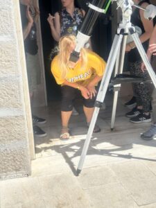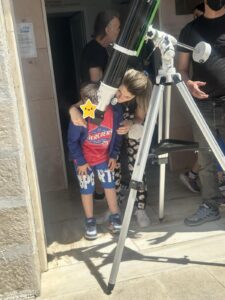 Μαθητές και εκπαιδευτικοί ήρθαμε σε επαφή με τον Ήλιο μέσα από την διαδραστική ομιλία των υπευθύνων και την παρατήρησή του από ειδικό τηλεσκόπιο. Ήταν μια αξέχαστη εμπειρία για όλους!!