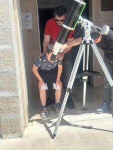 Μαθητές και εκπαιδευτικοί ήρθαμε σε επαφή με τον Ήλιο μέσα από την διαδραστική ομιλία των υπευθύνων και την παρατήρησή του από ειδικό τηλεσκόπιο. Ήταν μια αξέχαστη εμπειρία για όλους!!