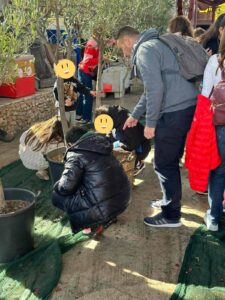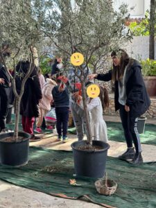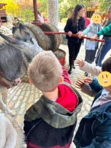 Το Βιωματικό Πάρκο Ζαχαίος, ένα παραδοσιακό κτήμα με πετρόκτηστες αίθουσες και καταπράσινους κήπους, επισκεφθήκαμε την Παρασκευή 22 Νοεμβρίου 2024. Παρακολουθήσαμε το εκπαιδευτικό πρόγραμμα “Λάδι…..ο θησαυρός της ελιάς”, όπου οι υπεύθυνοι του πάρκου μας παρουσίασαν μερικές από τις διαδικασίες του ελαιοτριβείου. Μαζέψαμε ελιές, μάθαμε πως παράγεται το λιόψωμο και η πάστα ελιάς από κινούμενες μυλόπετρες από τον γάιδαρο του κτήματος, μάθαμε πως φτιάχνεται το σαπούνι και παρακολουθήσαμε το βίντεο “Ο Καραγκιόζης μας βγάζει το λάδι”.