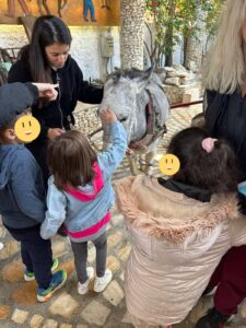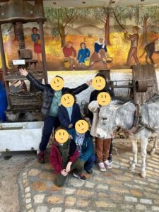 Το Βιωματικό Πάρκο Ζαχαίος, ένα παραδοσιακό κτήμα με πετρόκτηστες αίθουσες και καταπράσινους κήπους, επισκεφθήκαμε την Παρασκευή 22 Νοεμβρίου 2024. Παρακολουθήσαμε το εκπαιδευτικό πρόγραμμα “Λάδι…..ο θησαυρός της ελιάς”, όπου οι υπεύθυνοι του πάρκου μας παρουσίασαν μερικές από τις διαδικασίες του ελαιοτριβείου. Μαζέψαμε ελιές, μάθαμε πως παράγεται το λιόψωμο και η πάστα ελιάς από κινούμενες μυλόπετρες από τον γάιδαρο του κτήματος, μάθαμε πως φτιάχνεται το σαπούνι και παρακολουθήσαμε το βίντεο “Ο Καραγκιόζης μας βγάζει το λάδι”.