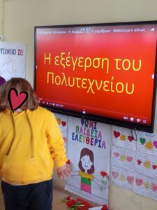 Οι μαθητές μας γιόρτασαν την 51η επέτειο του Πολυτεχνείου τιμώντας την Δημοκρατία και φωνάζοντας δυνατά συνθήματα όπως οι φοιτητές τον Νοέμβριο του 1973. Παραμύθια, παρουσιάσεις, τραγούδια και ποιήματα γέμισαν την γιορτή μας και μέσα από αυτά μάθαμε τα γεγονότα εκείνης της σημαντικής ημέρας για την Ελλάδα.